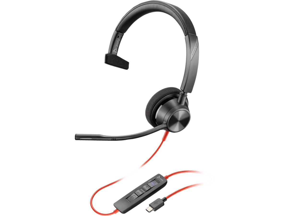 Poly Blackwire 3310 Monaural Microsoft Teams Certified USB-C Headset +USB-C/A Adapter