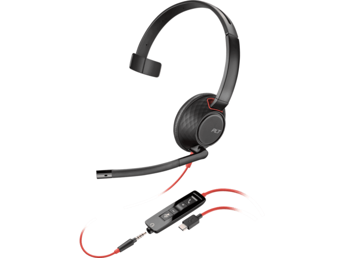 Poly Blackwire 5210 Monaural USB-C Headset +3.5mm Plug +USB-C/A Adapter