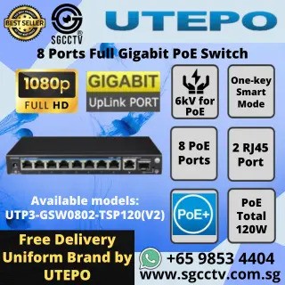 CHOICECYCLE CCTV offers UTP 8Port Switch UTP3-GSW0802-TSP120 8×PoE Ports 1×RJ45 Port 1xSFP Port CCTV SWITCH SINGAPORE POE Switch Repair NEW.