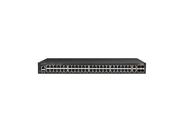 ICX 7150 Switch, 48x 10/100/1000 ports, 2x 1G RJ45 uplink-ports, 4x 1G SFP uplink-ports upgradable to up to 4x 10G SFP+ with license, basic L3 (static routing and RIP)