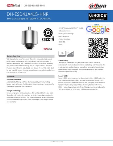| Model number: | DAHUA ESD41A415-HNR Explosion-proof Camera |