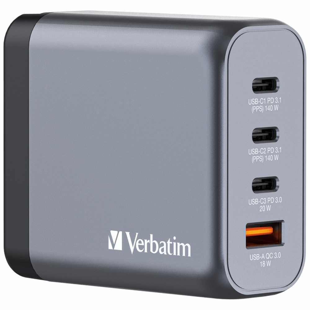 Verbatim GaN Charger 4 Port 140W USB A/C (EU/UK/US)